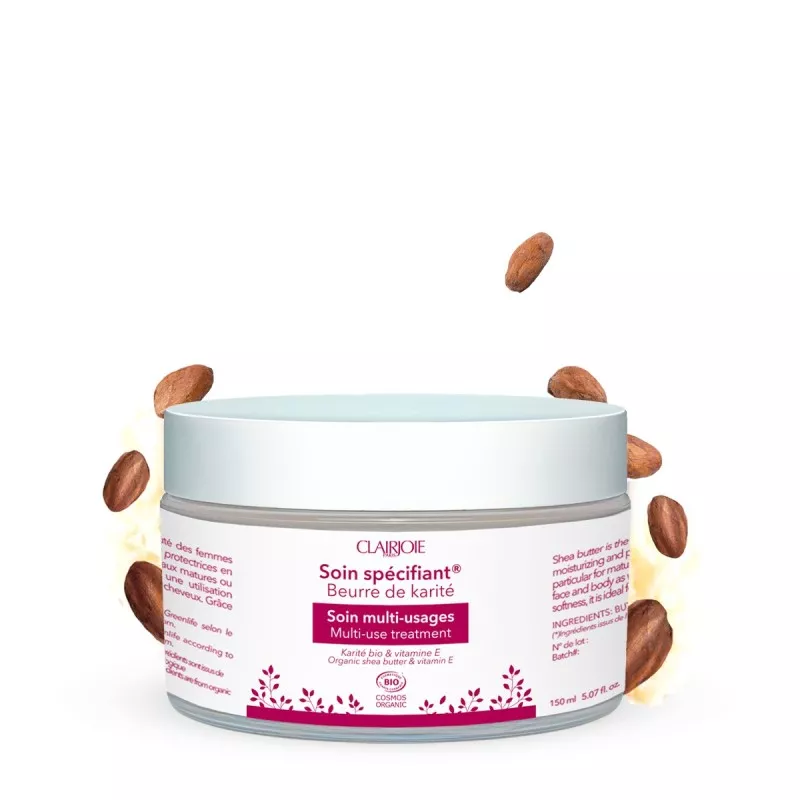 Il est le véritable secret de beauté des femmes africaines. Ses actions régénérantes, hydratantes¹ et protectrices en font un soin multi-usages, en particulier pour les peaux matures ou sèches. Ses propriétés nourrissantes permettent une utilisation visage et corps ainsi qu'en masque ou soin pour les cheveux. Grâce à sa douceur, il est idéal pour masser toute la famille.